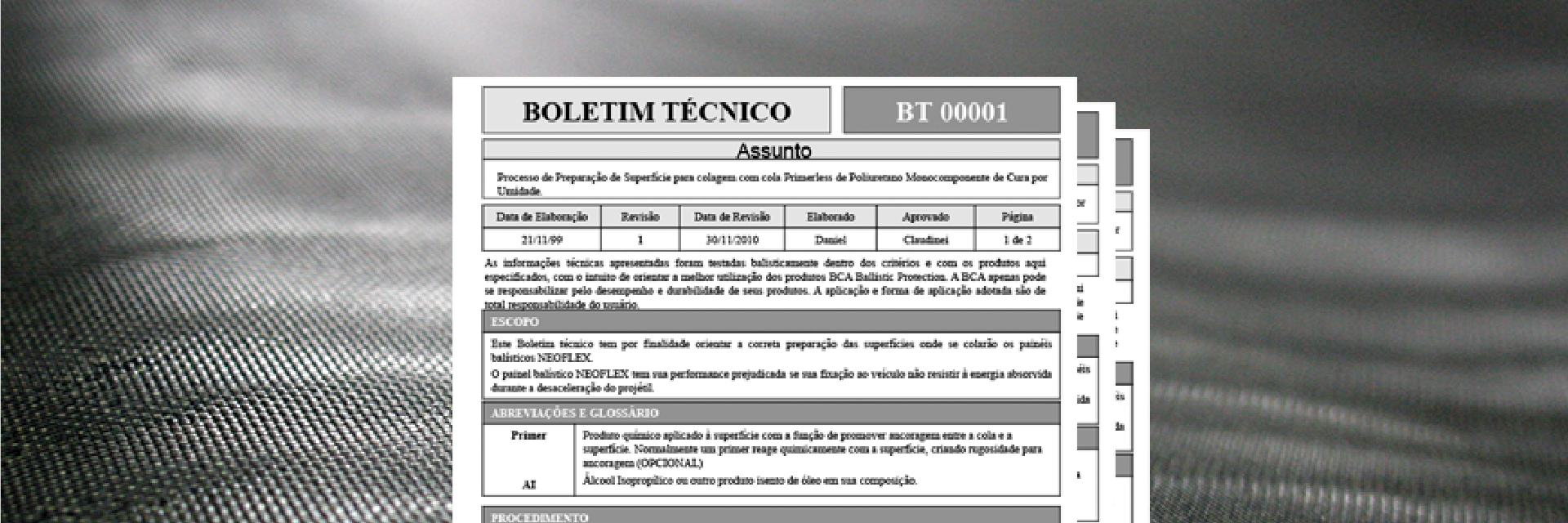 The technical information presented underwent ballistic testing within the criteria and with the products specified herein, in order to guide the best use of BCA Ballistic Protection products. BCA can only be responsible for the performance and durability of its products. The application and form of application adopted are the sole responsibility of the user.